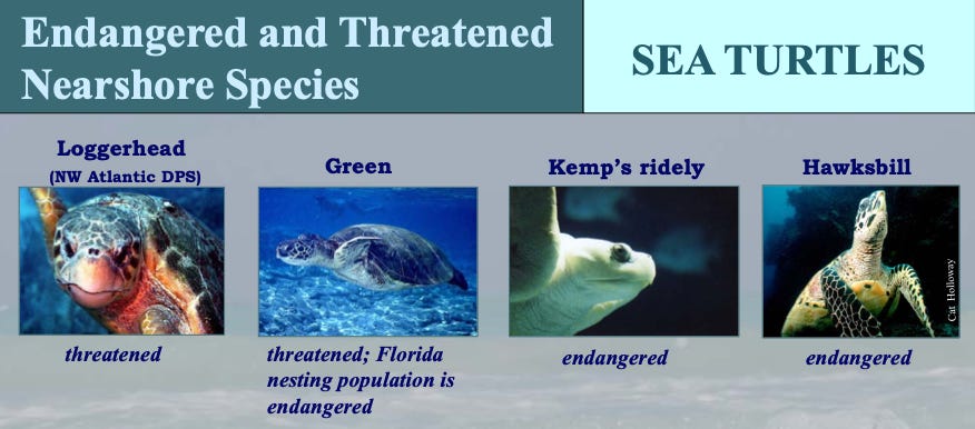 Protected sea turtle species in the Gulf of Mexico. Source: NOAA
